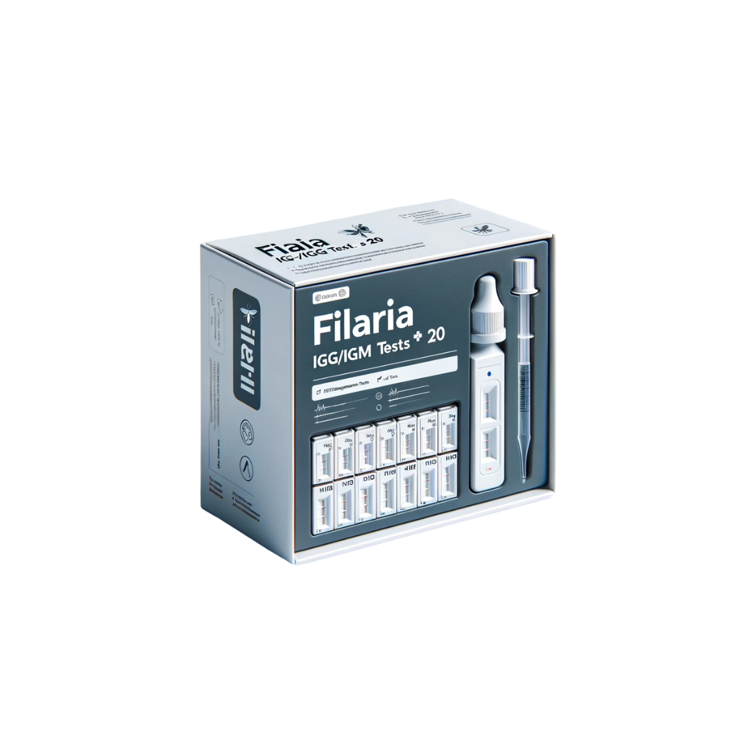 The Filaria IgG/IgM Test 20 kit provides a quick and reliable method for the detection of filariasis, featuring 20 individually sealed test strips for accurate diagnosis.